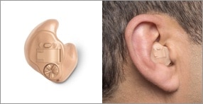 This hearing aid is placed in the ear canal and is the smallest available. It takes advantage of the ear’s natural ability to collect sound, and its discreet size makes the device virtually invisible to others.