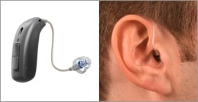 A RIC hearing aid consists of a tiny housing containing all electronics except the receiver, which is positioned behind the ear. A thin tube connects the housing to the receiver, which is worn in the canal of the ear.